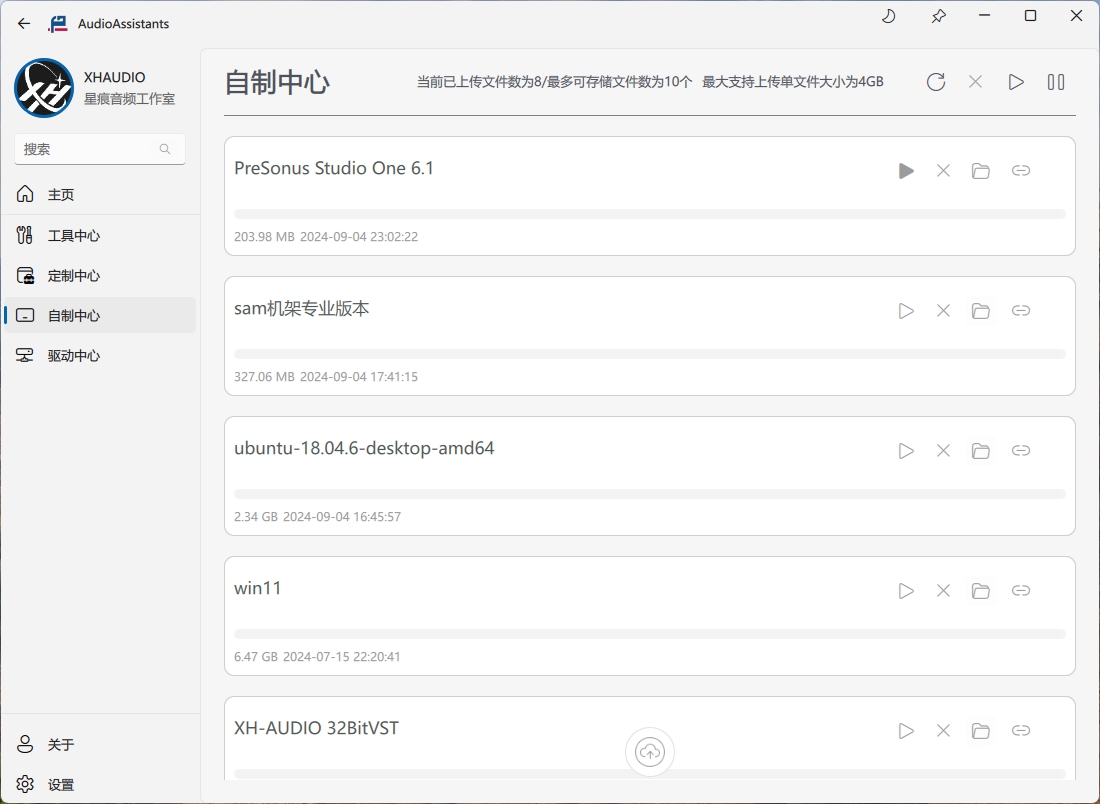 自制中心是可以上传你自己的软件包,可以进行上传,下载及删除操作;